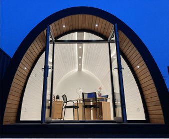 We designed our pods with the unique all glass front so that you get to admire as much as the glorious view you have infront of you from the beautiful land to the stars at night in the comfort from your chair or relaxing in your bed inside the pod. As well as letting in as much natural light whilst perhaps working at your office desk or relaxing after an afternoon walk.